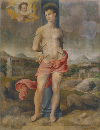 Una riproduzione di un ex voto posto accanto a un’opera illustre, la Madonna col Bambino e due angeli dell’elegante Maestro della Madonna Straus, sintetizza gli aspetti di due diverse culture figurative e devozionali.